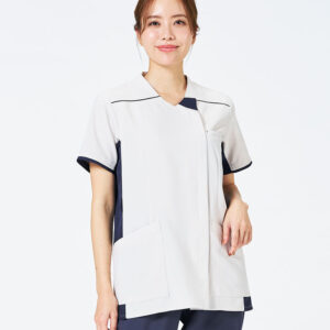 日勤はオーソドックスでありながら新鮮さをもたらすホワイトベースのスクラブに、ベージュとダークネイビーを入れた3配色。