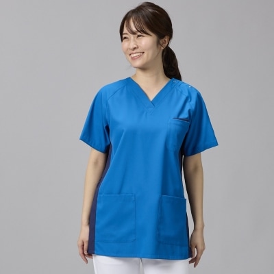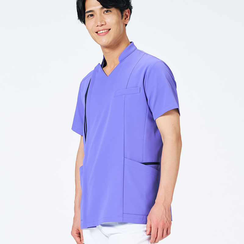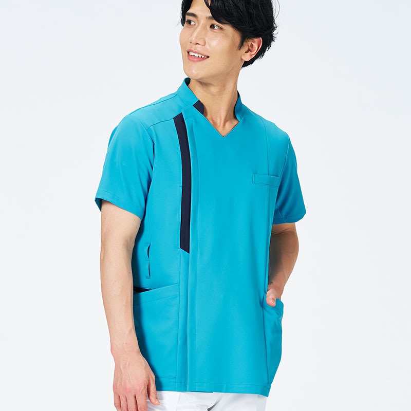 こちらの男女兼用スクラブは、差し色にダークネイビーが施され、アクセントとして効いています。